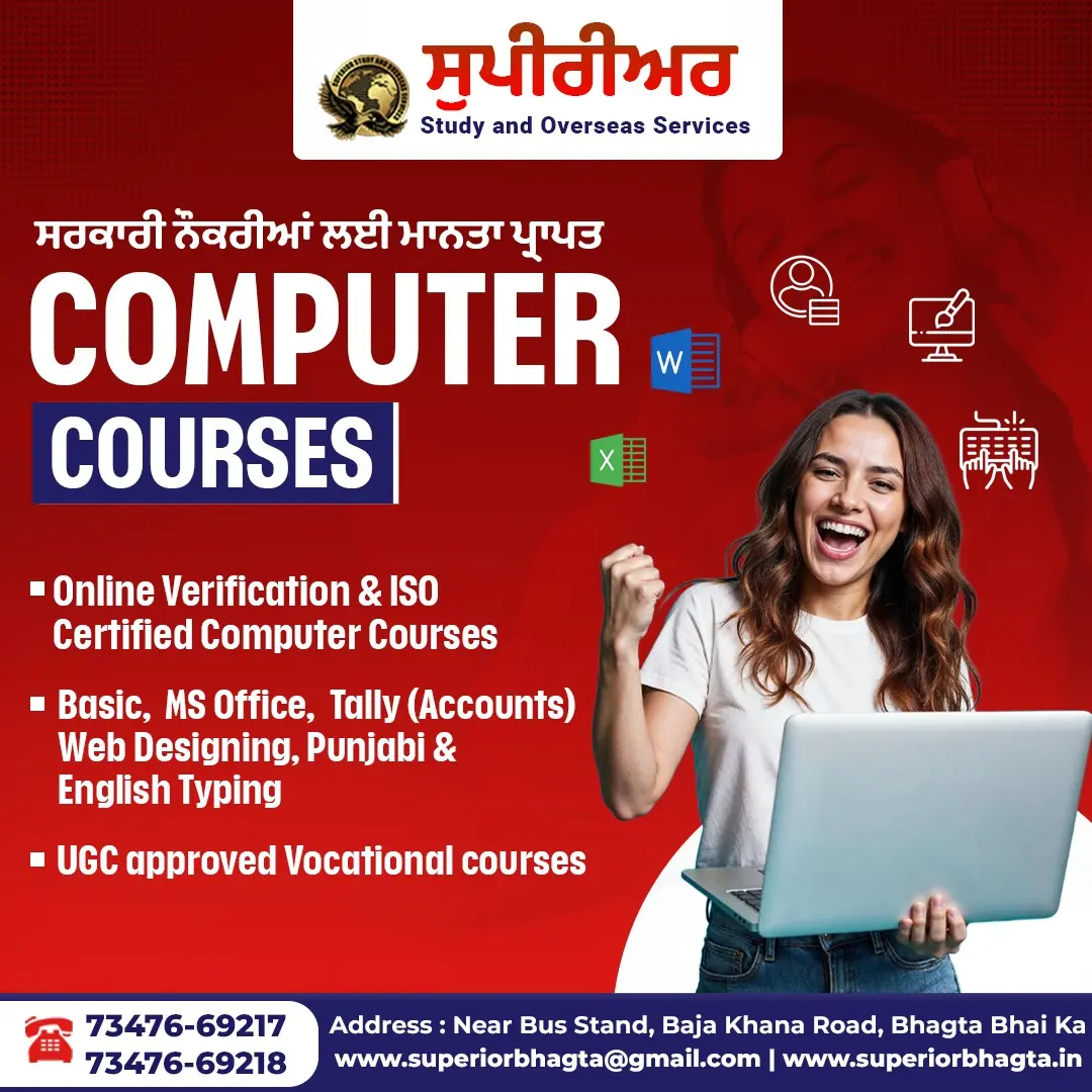 Superior Study and Overseas Services is a leading ISO 9001:2015 certified institute committed to delivering quality education, skill development, and career guidance. Located on Baja Khana Road, near Snakkers, Bhagta Bhai Ka, our institute serves as a one-stop destination for students who aim to build their future in India or abroad.